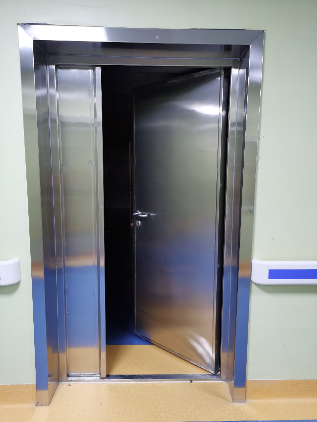 防护门通常采用内衬铅板结构,铅板厚度根据铅当量要求设计,确保防护效果。